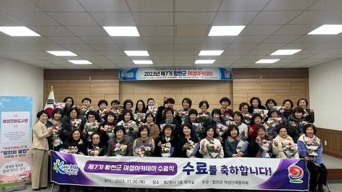 이정임 합천군여성단체협의회장은 “배움의 열정으로 교육을 수료한 수강생에게 감사드리며, 합천군의 여성친화도시 신규지정을 모든 회원들과 함께 축하드린다”고 전했다.