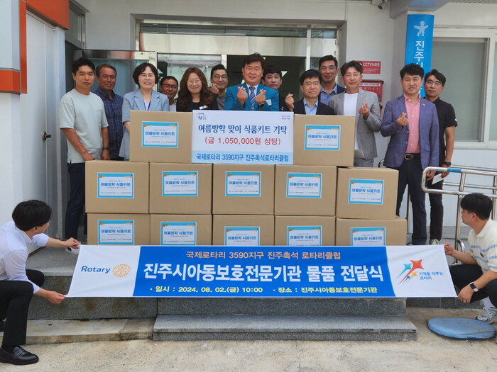 진주촉석로타리클럽(회장 김재원)은 2일 학대피해아동 13가정에 식품꾸러미(환가액 100만 원 상당)를 전달해 달라며 진주시복지재단(이사장 이성갑)에 기탁했다.