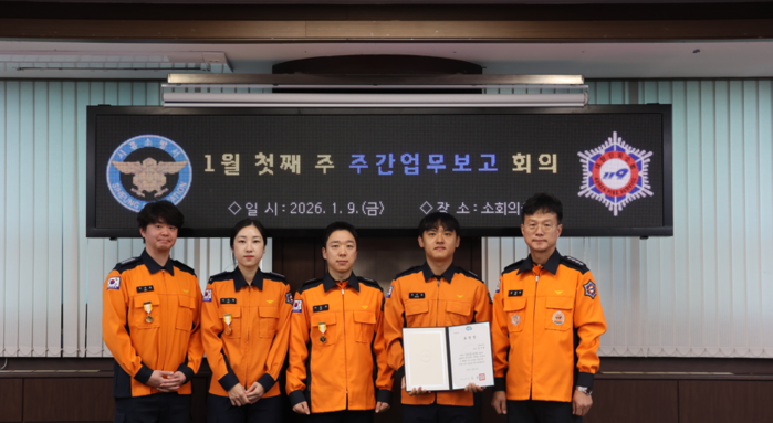 이번 수여 대상자는 소방장 서재훈, 이가원, 소방교 이창호, 이다솜 대원으로, 이 가운데 이창호 대원은 ‘하트세이버 10회 순금기장’을, 서재훈·이가원·이다솜 대원은 ‘하트세이버 5회 순금기장’을 각각 수여받았다.