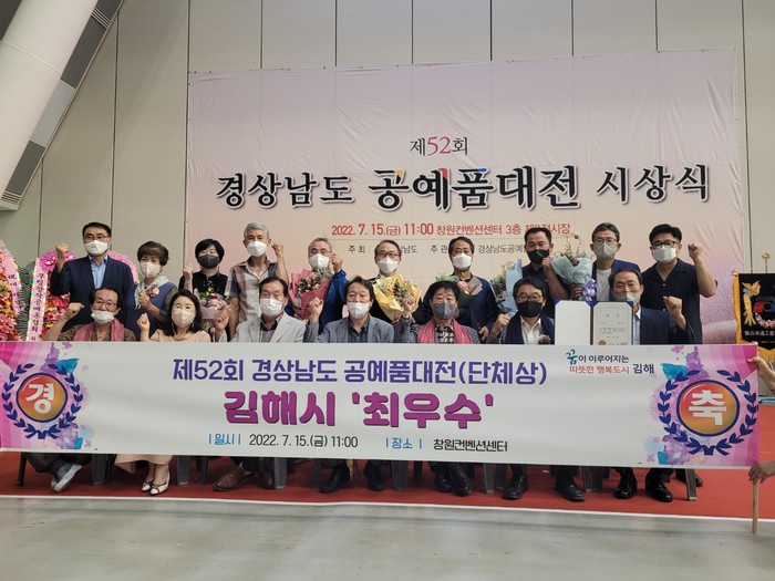 [김해=최성일 기자]김해시는 ‘52회 경상남도 공예품 대전'에서 23년 연속 최우수 기관 상을 수상했다고 밝혔다.