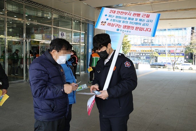 캠페인 주요 내용은 ▶비상구 폐쇄 등 불법 행위 대국민 신고 제도 홍보 ▶겨울철 3대 전기 제품 안전 사용 안내 ▶차량용 소화기 및 주방용 소화기 비치 홍보 ▶주택 화재 감지기(주택용 소방 시설) 설치 홍보 ▶전기 차량 화재 예방 및 공동 주택 피난 시설 홍보·안내 ▶불조심 재 강조의 날 관련 사항 홍보 등이다.