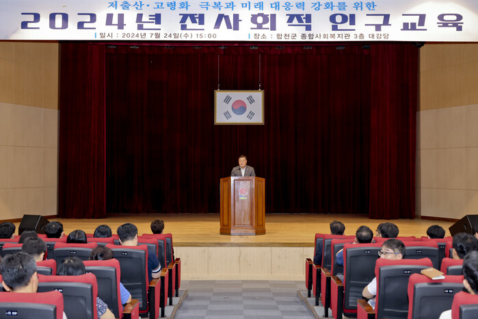 [합천=이영수 기자] 합천군(군수 김윤철)은 7월 24일 합천군 종합사회복지관 3층 대강당에서 약 280여 명의 공무원을 대상으로 전사회적 인구교육을 실시했다.