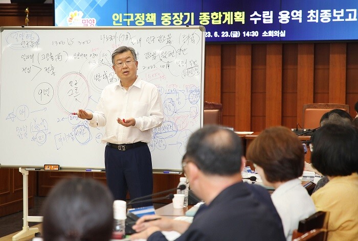 박일호 시장은 “최근 밀양시의 인구 동향은 전입인구가 전출인구보다 많은 순유입이 지속 발생하고 있으나 출생아 수가 5년 전의 절반 수준인 300명 수준으로 자연감소가 인구수에 큰 영향을 미치고 있다”면서 “인구정책 중장기 종합계획을 바탕으로 다양한 맞춤형 시책들을 추진해 누구나 찾아오고 살고 싶은 도시를 조성하는데 최선의 노력을 다하겠다”고 밝혔다.