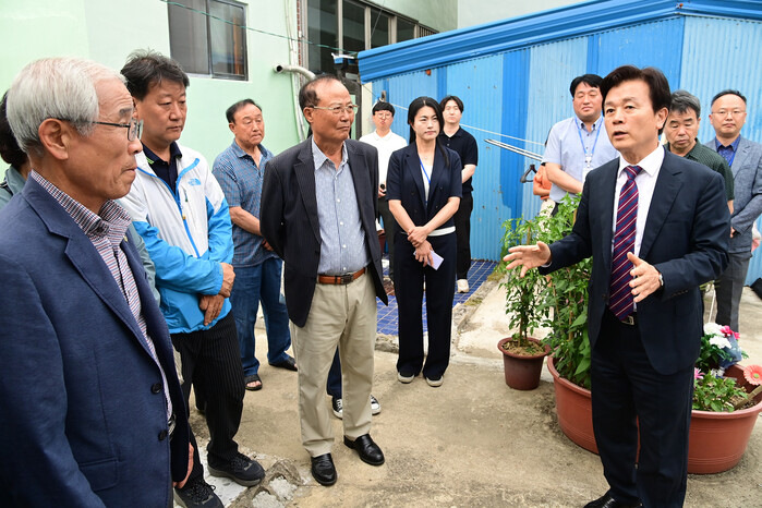 이날 현장 방문지는 노후 저층 주거 밀집지역으로 형성된 사업지구 동편의 서봉지 공원 아래 지역으로, 지역민들이 해방촌이라고 부르는 곳이며 노후 주택이 20여 채 남아 있다.