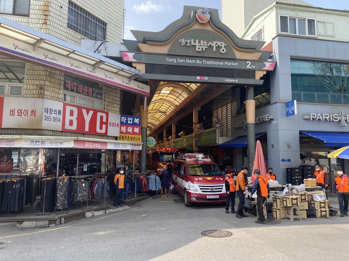 양산소방서(서장 박정미)는 지난 22일 남부시장 및 관내 전통시장을 대상으로 소방공무원 등 80여 명이 참석한 가운데 소방차 출동로 확보 훈련 및 홍보캠페인을 실시했다고 밝혔다.