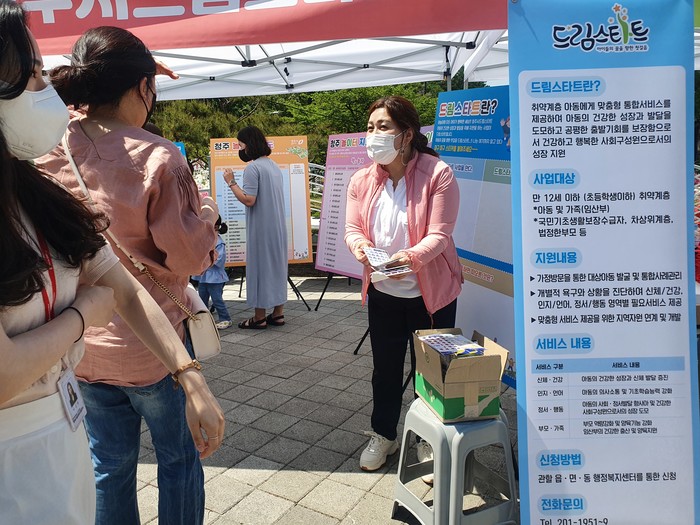 청주시드림스타트는 지난 5월 5일(목) 청주랜드와 오송호수공원에서 드림스타트 사업에 대한 시민 인지도 조사와 사업 안내를 위한 홍보 활동을 실시했다.