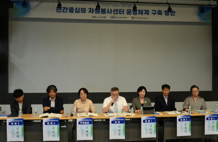 토론은 이영철 광주대 사회복지학과 명예교수를 좌장으로 조원태 행정안전부 민간협력과 자원봉사팀장, 김유미 서초구자원봉사센터장, 이화옥 강남구자원봉사센터장, 윤흥모 태안군사회복지협의회 사무국장, 오단이 강남대 사회적 경제 ICC 교수가 참여했다.