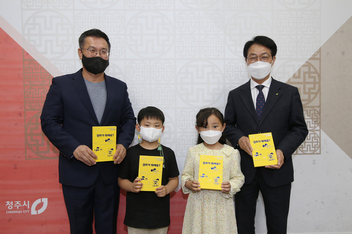 청주시는 2022. 5. 6.(금) 13시 30분 임시청사 직지실에서 아동 대표와 청주시어린이집연합회에 전국 최초 유아 맞춤형으로 개발한 아동권리북 200부를 전달했다.