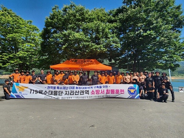 이날 훈련은 119특수대응단과 지리산권역(합천, 산청, 함양, 거창소방서) 구조대원 50여명이 참여했다.