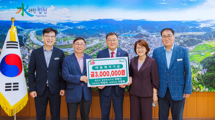 김해식 행정복지국장은 “평생직장이 되어준 합천군에 조금이나마 보탬이 되고 싶었다”며 “기탁한 아동복지기금이 밝은 미래를 꿈꾸는 아이들에게 든든한 버팀목이 되길 바란다”고 말했다.