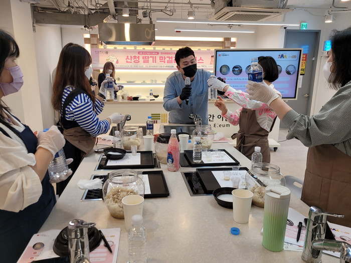 산청군은 최근 서울 종로구 소재 한식진흥원에서 ‘산청 딸기, 메뚜기쌀 막걸리 빚기 클래스’를 진행했다고 6일 밝혔다.
