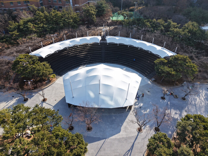 정비를 통해 기존 노후 무대는 디자인 가벽과 막구조 지붕 형태로 새롭게 조성돼 공연 시 발생하는 소음을 완화할 것으로 기대된다. 객석에는 그늘막을 설치하고, 앉음 덱과 수국 식재를 추가해 관람객이 쾌적하게 머물 수 있는 환경을 마련했다.