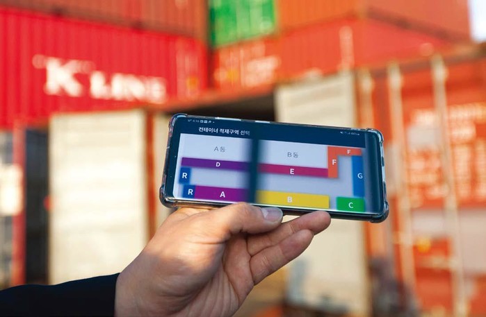컨테이너 반출입 상황을 작업자 누구나 스마트폰으로 실시간 파악할 수 있게 해, 입출고 시간을 단축하고 생산성을 높일뿐 아니라 안전사고 위험도 크게 줄였다. 창고관리시스템에 반입, 반출 예정인 컨테이너에 관한 정보를 등록해 작업계획을 세우고, 해당 컨테이너의 위치 및 수량에 대한 작업지시를 장비기사의 스마트폰으로 전달하는 방식이다.