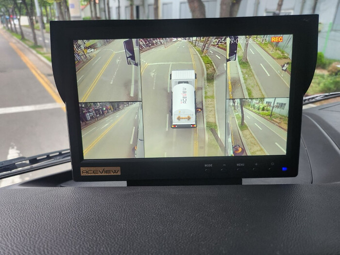 | ▲대형 청소차량에 설치된 어라운드 뷰를 통해 실시간으로 모니터링하고 있다 /사진제공=시흥시 |