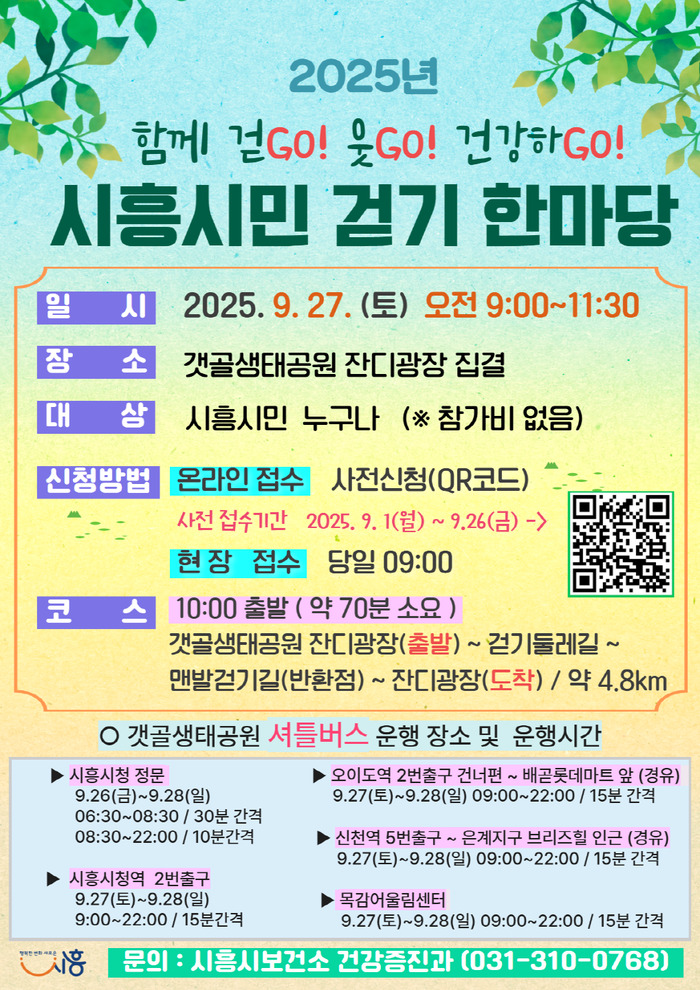 행사에 대한 자세한 내용은 시흥시보건소 건강증진과 블로그에서 확인할 수 있으며, 기타 자세한 내용은 시흥시보건소 건강증진과로 문의하면 된다.