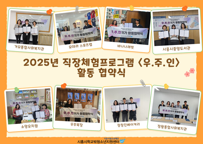 | ▲ (재)시흥시청소년재단 산하기관인 시흥시학교밖청소년지원센터(이하, 학교밖센터)는 학교 밖 청소년의 진로 설계 및 자립을 위해 직장체험 프로그램 우리가 주인인 인턴(이하, 우주인) 홍보 포스터 /자료제공=시흥시 |