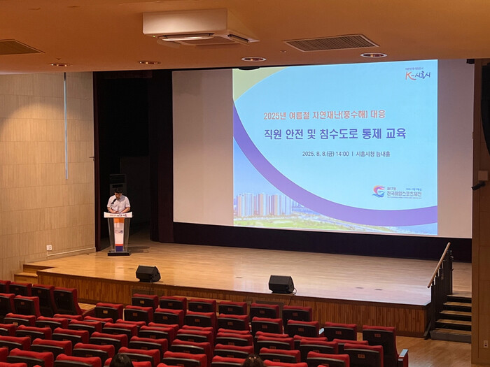 [시흥=송윤근 기자] 경기 시흥시(시장 임병택)는 다가올 집중호우에 선제적으로 대응하기 위해 지난 8월 8일 시청 늠내홀에서 침수 우려가 있는 도로 통제 임무를 맡은 비상근무자 120명을 대상으로 사전 안전교육을 실시했다.