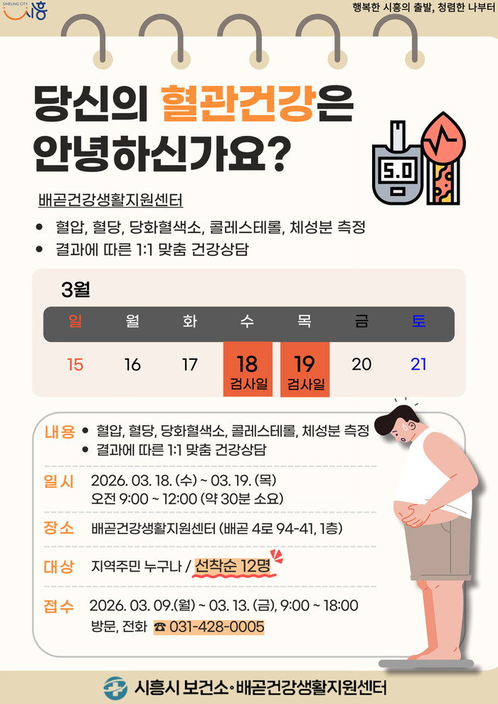 이형정 시흥시보건소장은 “고지혈증은 뚜렷한 자각 증상이 없어 방치하기 쉬운 만큼 정기적인 검사와 관리가 무엇보다 중요하다”라며 “이번 프로그램을 통해 주민들이 혈관 건강 상태를 점검하고 올바른 생활 습관을 실천하는 계기가 되길 바란다”라고 말했다.