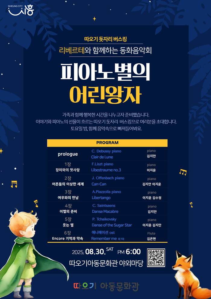 이번 공연의 주제는 ‘피아노별의 어린왕자’이다. 세계적으로 사랑받는 동화 어린왕자 이야기를 모티브로 한 클래식 피아노 연주와 동화가 결합된 동화음악회로 진행된다. 관객들은 익숙한 클래식 음악과 어린왕자의 이야기를 편안하게 감상할 수 있다.