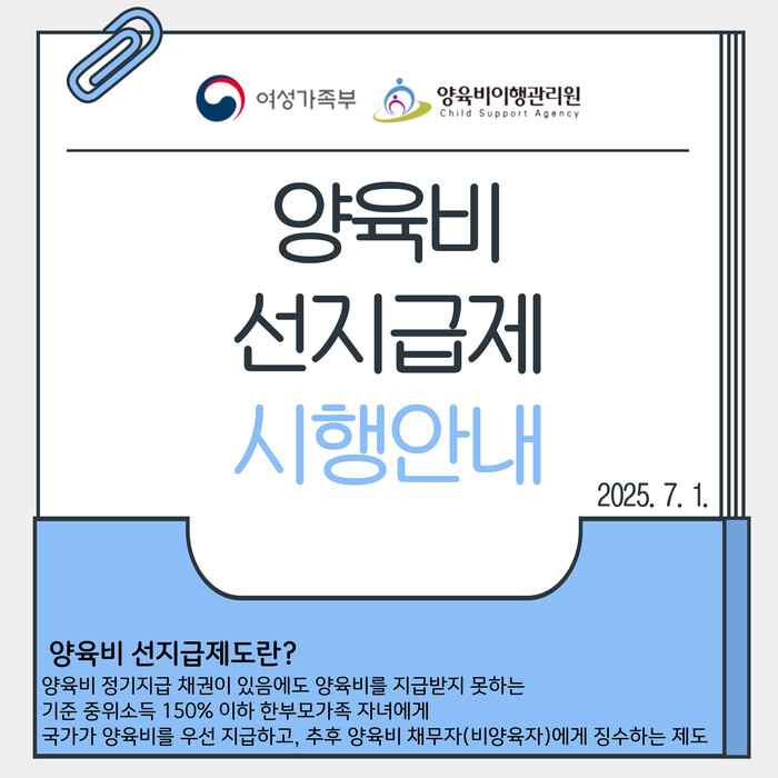 [시흥=송윤근 기자] 비양육 부모로부터 양육비를 받을 권리가 있음에도 지급받지 못하는 한부모 가정의 자녀에게 국가가 먼저 양육비를 지급하고, 이후 비양육 부모에게 회수하는 ‘양육비 선지급제’가 지난 7월부터 시행되고 있다.