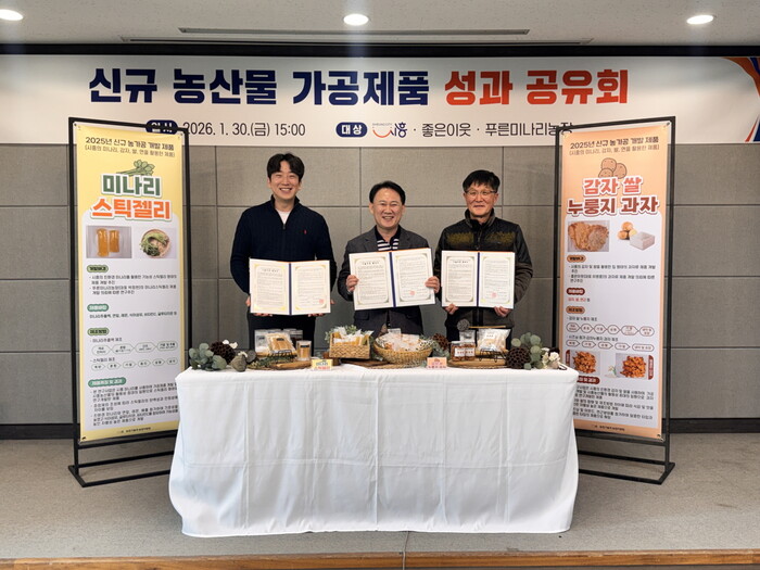 [시흥=송윤근 기자] 경기 시흥시 농업기술센터는 지난 1월 30일 센터 내에서 지역 농산물을 활용한 ‘신규 농가공제품 개발 성과공유회 및 기술이전 업무협약식’을 열었다.