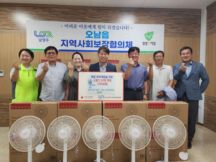 기부받은 선풍기는 대상자 선정 후 오남읍 지역사회보장협의체 위원들이 직접 가정을 방문해 전달할 예정이며, 사용법 안내와 함께 폭염 시 유의사항도 함께 안내할 계획이다.