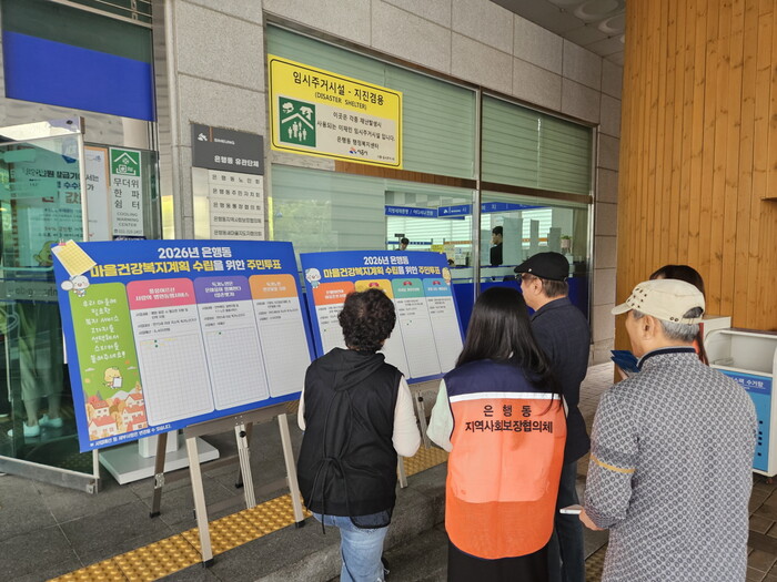 은행동은 지난 3월 마을건강복지계획 추진단을 구성한 이후 주민욕구조사와 2차 간담회를 거쳐 복지의제를 발굴했으며, 이번 주민투표에는 기존 추진 사업 4개와 신규 제안 사업 3개 등 총 7개 사업이 포함됐다.