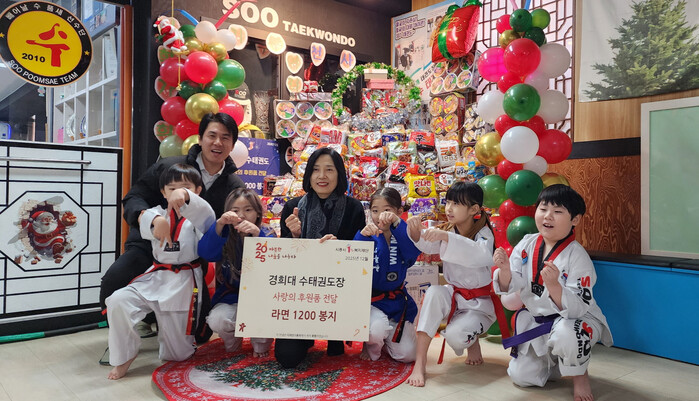 경희대수태권도장은 매년 연말 ‘우리의 라면이 사랑이라면’이라는 주제로 꾸준한 기부 활동을 이어오고 있으며, 올해 역시 원생들이 직접 작성한 따뜻한 응원 메시지를 라면과 함께 전달했다.