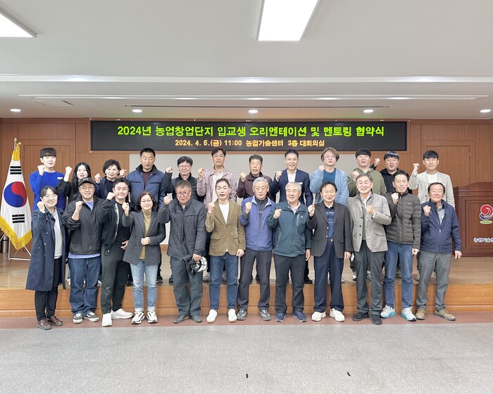 이번 오리엔테이션 시간에는 농업창업단지의 전체적인 교육 프로그램과 및 입교생을 위한 합천군 귀농정책 및 멘토링제, 영농 현장실습 지원사업 안내와 입교생과 지도직 출신 공무원 간의 매칭을 통해 정착을 돕는 현장형 멘토링제 협약식을 진행했다.