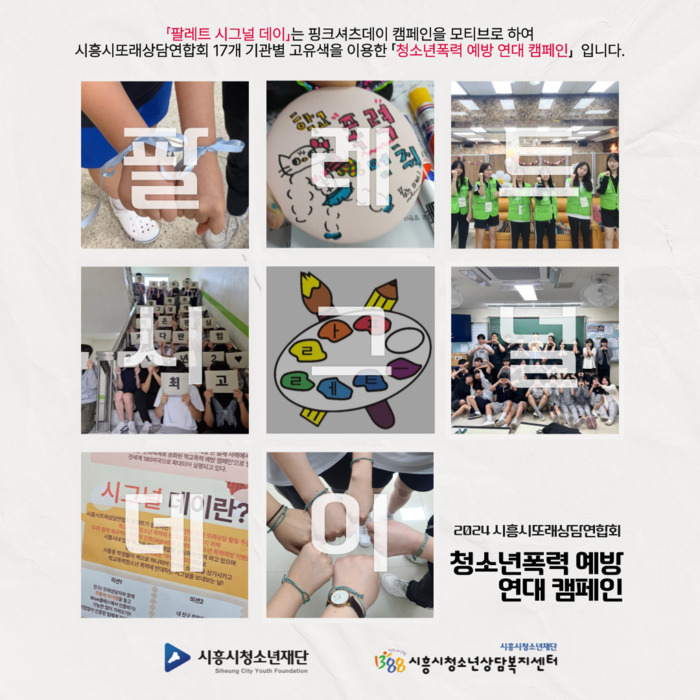 올해는 세계적인 폭력 예방 캠페인 ‘핑크셔츠 데이’를 모티브로 해 팔레트 소속 기관별로 선정한 대표색을 선정하고 인증하는 ‘팔레트 시그널 데이’를 운영함으로써, 지역사회 내 3,400여 명의 청소년들과 연대하는 집단 캠페인으로, 청소년폭력을 예방하는 문화를 형성하는 활동을 기획해 운영하고 있다.