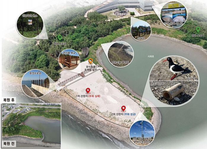 시흥시가 철새도래지 서식처 조성사업에 2년 연속 선정돼 추진한 시화MTV ‘검은머리물떼새 서식지 조성사업’은 2025년 제25회 자연환경대상 기후에너지환경부장관상을 수상하며 그 생태복원 역량을 인정받았다. 시는 (사)시화호지속가능파트너십과 협력해 이번 사례를 생태ㆍ환경교육 프로그램과 연계 발전시켜 나가고 있다.