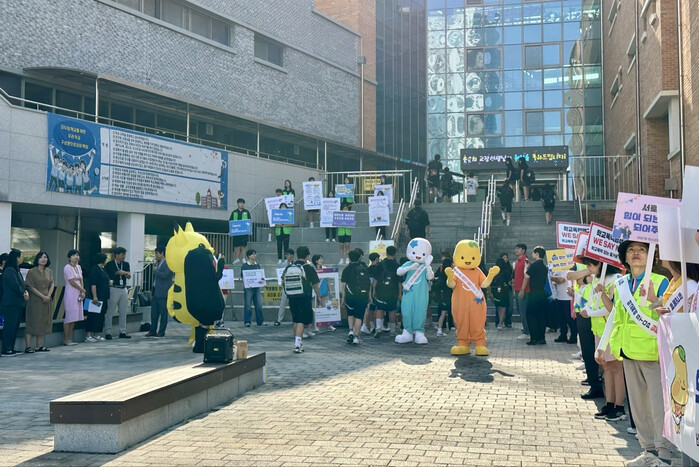 참여자들은 캠페인 문구가 들어간 팻말과 현수막을 들고 구호를 외치며, 등굣길 학생들을 대상으로 학교폭력에 대한 경각심을 높이는 활동을 적극적으로 펼쳤다. 학생들은 함께 구호를 외치고, 캠페인 참여 인증사진을 촬영하며 행복하고 안전한 학교 만들기에 동참했다.