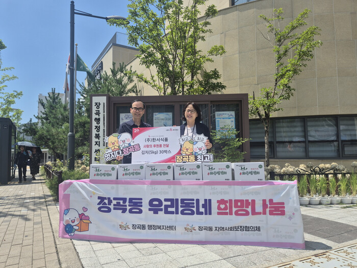 김치 제조 전문기업인 ㈜한서식품은 지난 2월 장곡동 행정복지센터, 장곡동 지역사회보장협의체와 업무협약을 체결한 이후, 관내 취약계층과 위기가구의 식생활 개선 및 안부 확인, 복지 증진을 위한 정기적인 후원을 이어오고 있다.