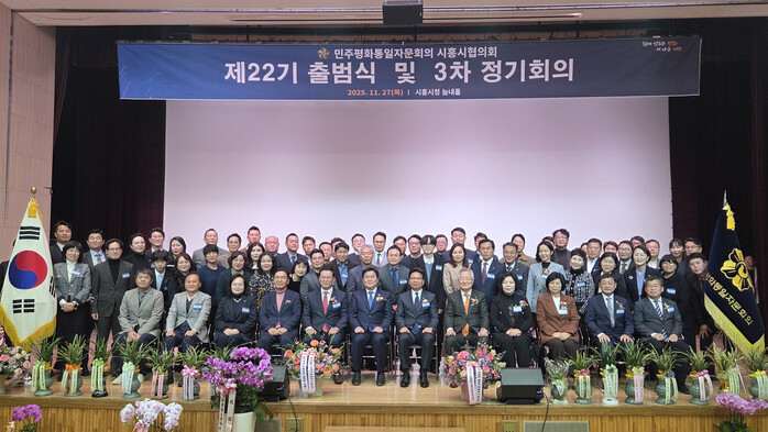 [시흥=송윤근 기자] 민주평화통일자문회의 시흥시협의회는 지난 11월 27일 시청 늠내홀에서 ‘제22기 시흥시협의회 출범식 및 협의회장 이취임식’과 ‘2025년 정기회의’를 열고, 새로운 임기 출범을 공식 선언했다.