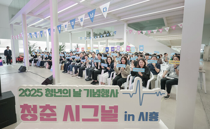 | ▲청년의 날 기념행사 '2025 청춘시그널 인 시흥' 참석자들이 기념 촬영을 하고 있다 /사진제공=시흥시 |
