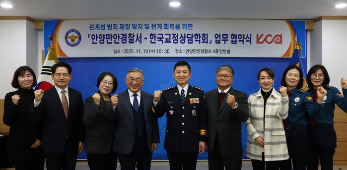 | ▲ (사)한국상담학회 교정상담학회는 지난 11월 19일 안양만안경찰서를 방문 가정폭력 등 관계성 범죄의 재발 방지를 위한 업무협약(MOU) 을 체결했다 /사진제공=한국상담학회 |