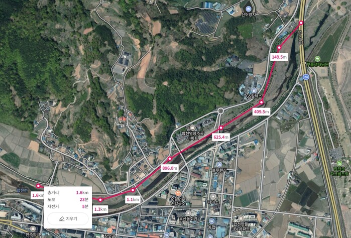 합천천 산책로 구간 태양광 가로등 25본 설치로 안심 운동 구간 조성