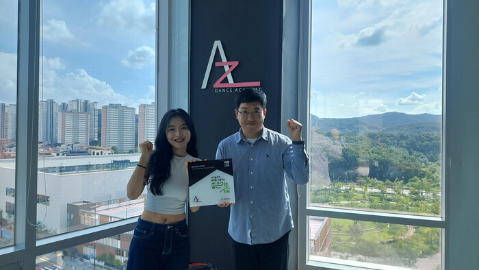| ▲ 굿네이버스 경기화성지부는 화성시 봉담읍에 위치한 에이젯댄스학원과 함께 좋은이웃학원 현판 전달식을 진행했ek /사진제공=굿네이버스 경기화성지부 |