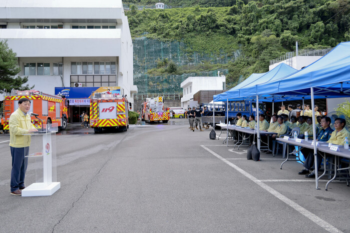 이날 훈련은 국가중요시설인 합천댐발전소에 테러범이 폭발물을 설치해 건물이 파괴되고 사상자가 발생하는 등 민심이 극도로 동요되고 있는 상황을 가정해 진행됐다. 유관기관 합동으로 소방굴절차, 펌프차, 수색드론 2대 등 14종의 각종장비가 동원돼 실전을 방불케 했다.