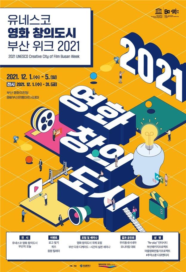 부산시(시장 박형준)는 오는 12월 1일부터 5일까지 5일간, 부산의 유네스코 영화 창의도시 지정 7주년과 부의장도시 선정을 기념하기 위해 ‘2021 유네스코 영화 창의도시 부산 위크’(이하 ‘위크’)를 개최한다고 밝혔다.