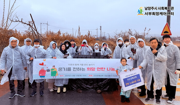 이와 함께 다산은혜교회는 서부희망케어센터를 통해 연탄 2,000장(200만 원 상당)을 기부, 교인들이 직접 연탄을 운반하며 다산동·퇴계원 지역 취약가구 4곳에 온기를 전했다.