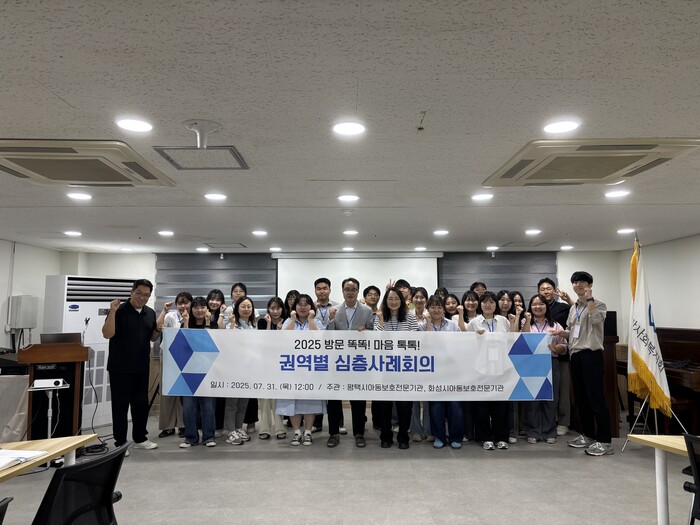 | ▲ 화성시아동보호전문기관은 평택시아동보호전문기관과 함께 화성특례시와 평택시의 아동학대 사례관리 업무 협력 증진을 위한 심층사례회의를 진행한 뒤 참석자들이 기념 촬영을 하고 있다 /사진제공=화성시아동보호전문기관 |