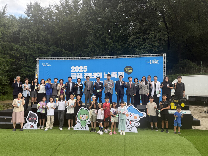 | ▲ 하은호 군포시장(뒷줄 오른쪽 아홉번째)이 ‘2025 군포 청년의 날 축제’에서 참석자들과 기념 촬영을 하고 있다 /사진제공=군포시 |