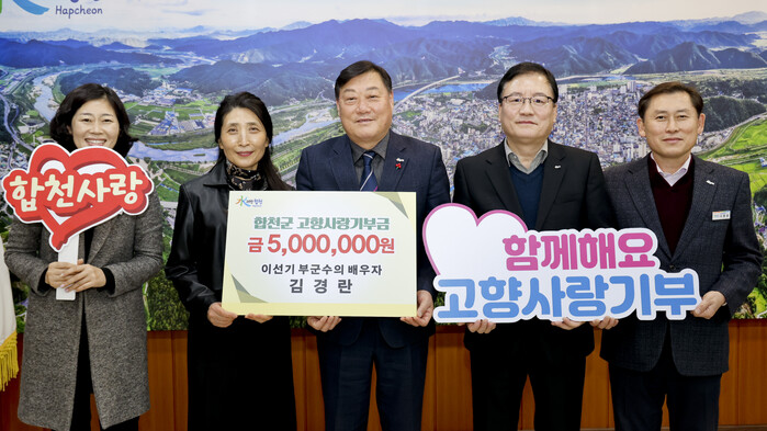 김 교장은 “남편이 합천에 근무한 지 2년이 넘어가는데, 그동안 남편의 각별한 합천 사랑을 지켜봐왔고, 자주 방문하면서 합천이 마음의 고향이 됐다”며 “기부금이 제2의 고향, 합천 발전에 도움이 되길 바란다”고 전했다.