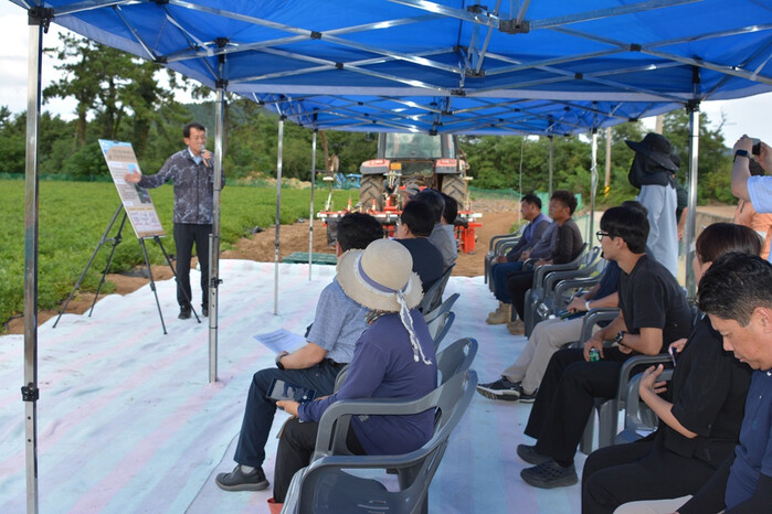 이날 연시회에는 땅콩 재배 농가와 국립식량과학원 관계자 등 30여 명이 참석해 신품종 특성과 함께 휴립피복기, 땅속작물수확기, 땅콩 탈협기 등 기계화 장비를 활용한 수확 과정을 직접 지켜보았다.
