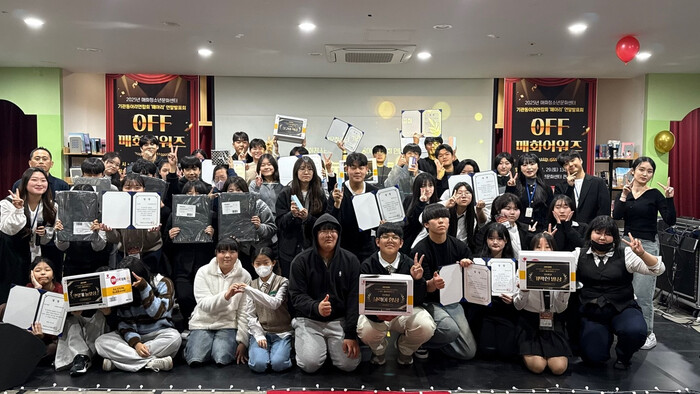 | ▲ ‘2025 시흥시청소년동아리연합회 연말 발표회’참석자들이 기념 촬영을 하고 있다 /사진제공=시흥시 |