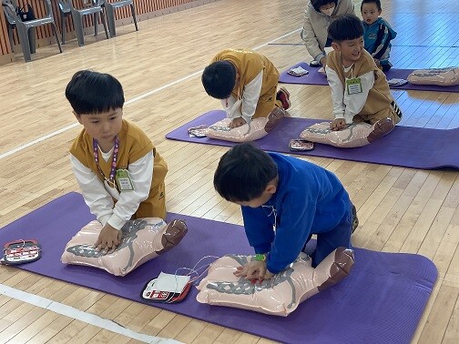 | ▲ 학생들의심페소생술을하고있다 |