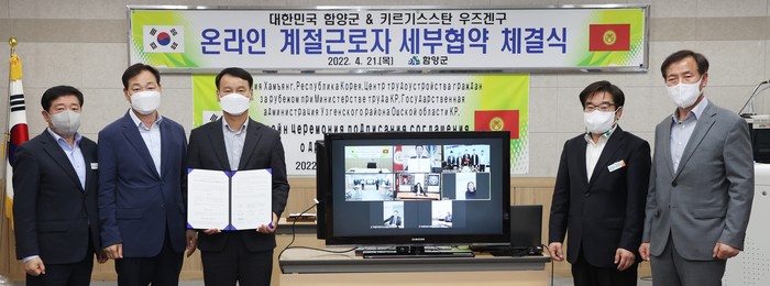 함양군은 지난 4월 21일 군청 소회의실에서 키르기스스탄 우즈겐구와 온라인을 통한 계절근로자 파견 관련 세부협약을 체결하고 협력을 구체화했다.