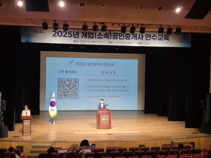 | ▲ 군포시는 9월 4일 개업·소속 공인중개사 180명을 대상으로 2025년 공인중개사 연수교육을 진행하고 있다 /사진제공=군포시 |