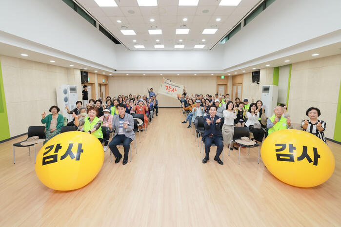 기념식에서는 대형 깃발과 풍선을 활용한 행사가 진행됐고 관장과 군포시장, 참여 어르신 및 내빈이 함께 ‘감사하는 시민, 행복한 군포시’ 구호를 외치며 감사와 화합의 의미를 나눴다. 실내 전시로는 종이접기 작품을 액자 형태로 전시해 야외 전시에 참여하기 어려운 프로그램도 함께 소개됐다.